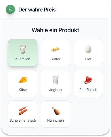 Echter Preis Rechner: Milch, Fleisch & vegane Vergleiche